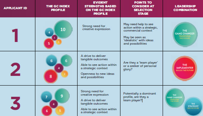 The report shows that although all three candidates possessed the skills, experience and personality to take on the role of Creative Director, the GC Index enabled us to set them apart: